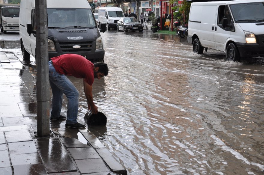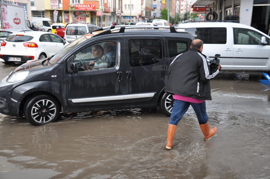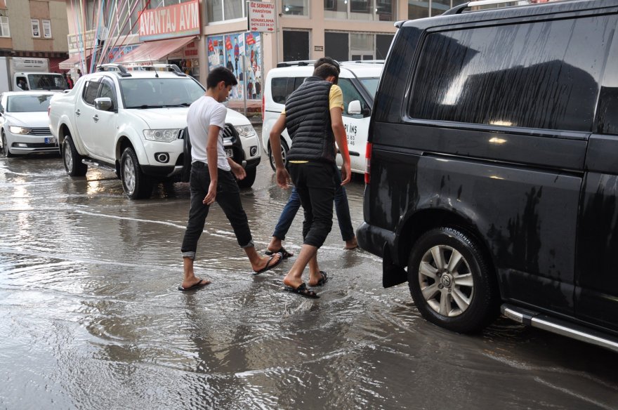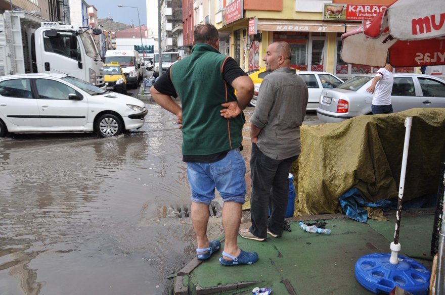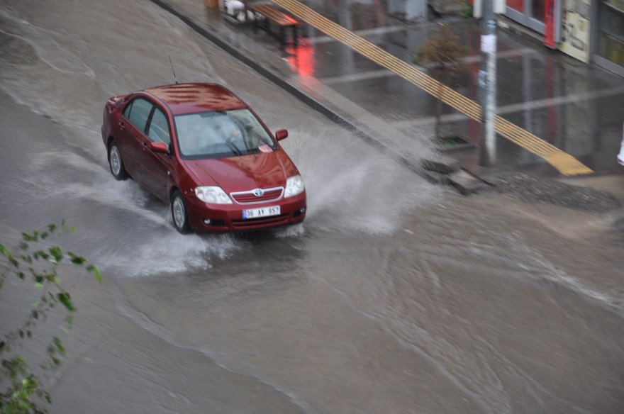 Kars’ta akşam saatlerinde etkili olan sağanak yağmur kısa sürede caddeleri sular altında bıraktı. Çok sayıda iş yerinin bodrumuna ise su doldu.