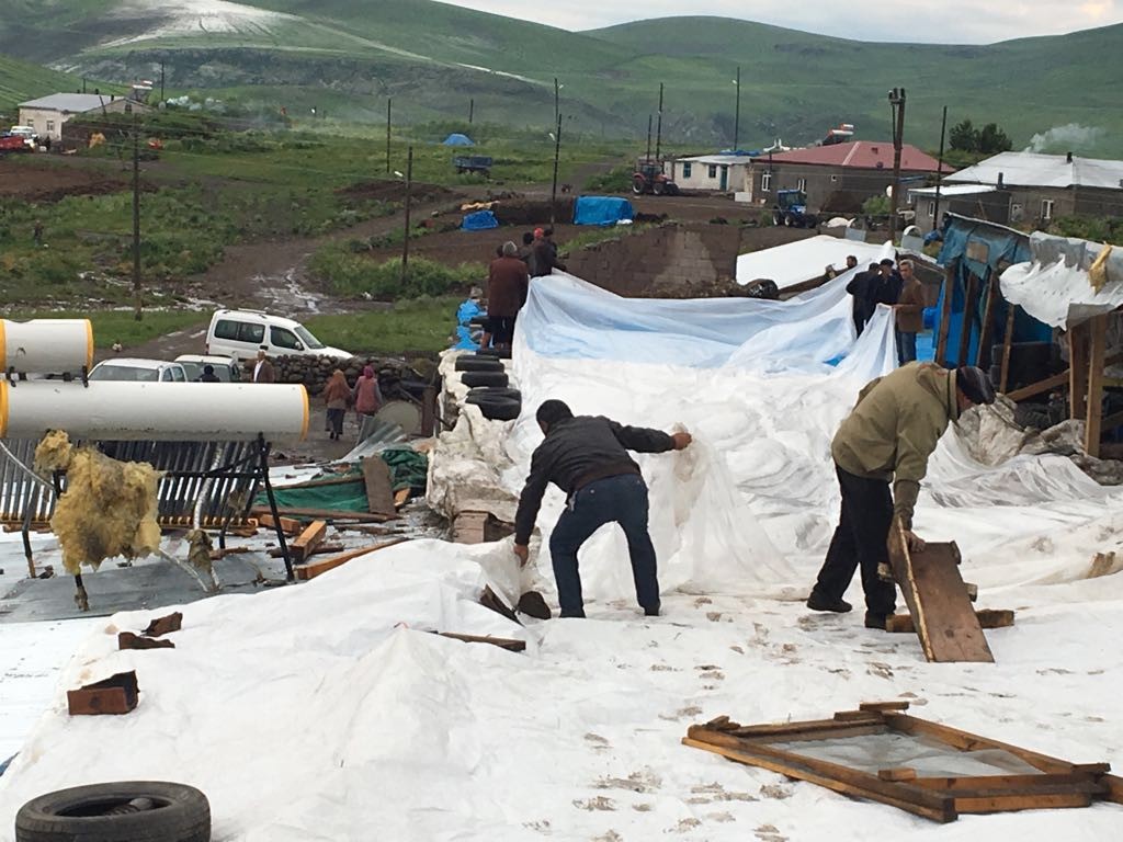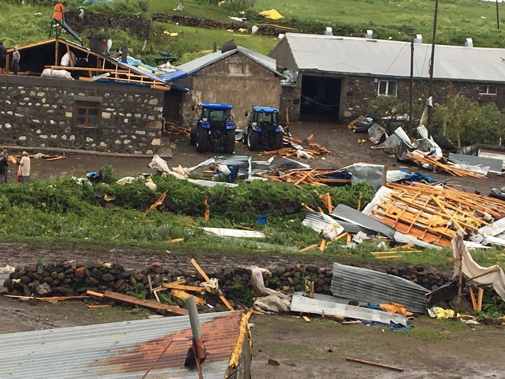Fırtına sonrası ortaya çıkan manzara ise cep telefonlarıyla kaydedildi. Çok sayıda evin çatısının uçtuğu köyde can kaybı yaşanmaması ise teselli oldu.