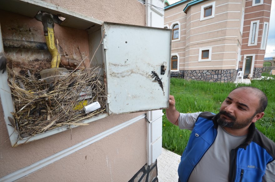 Kars'ın Sarıkamış ilçesinde sığırcık kuşları, doğalgaz sayaç kutularını mesken tutarak yuva yapıyor.