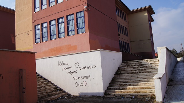 Kağızman’da daha önce son üç yılda yüzlerce öğrencinin sınıfta kalması ile gündeme gelen Kağızman Aras Anadolu Lisesi duvarlarındaki yazılar bu okulda eğitimin nasıl bir boyut aldığını gösteriyor.