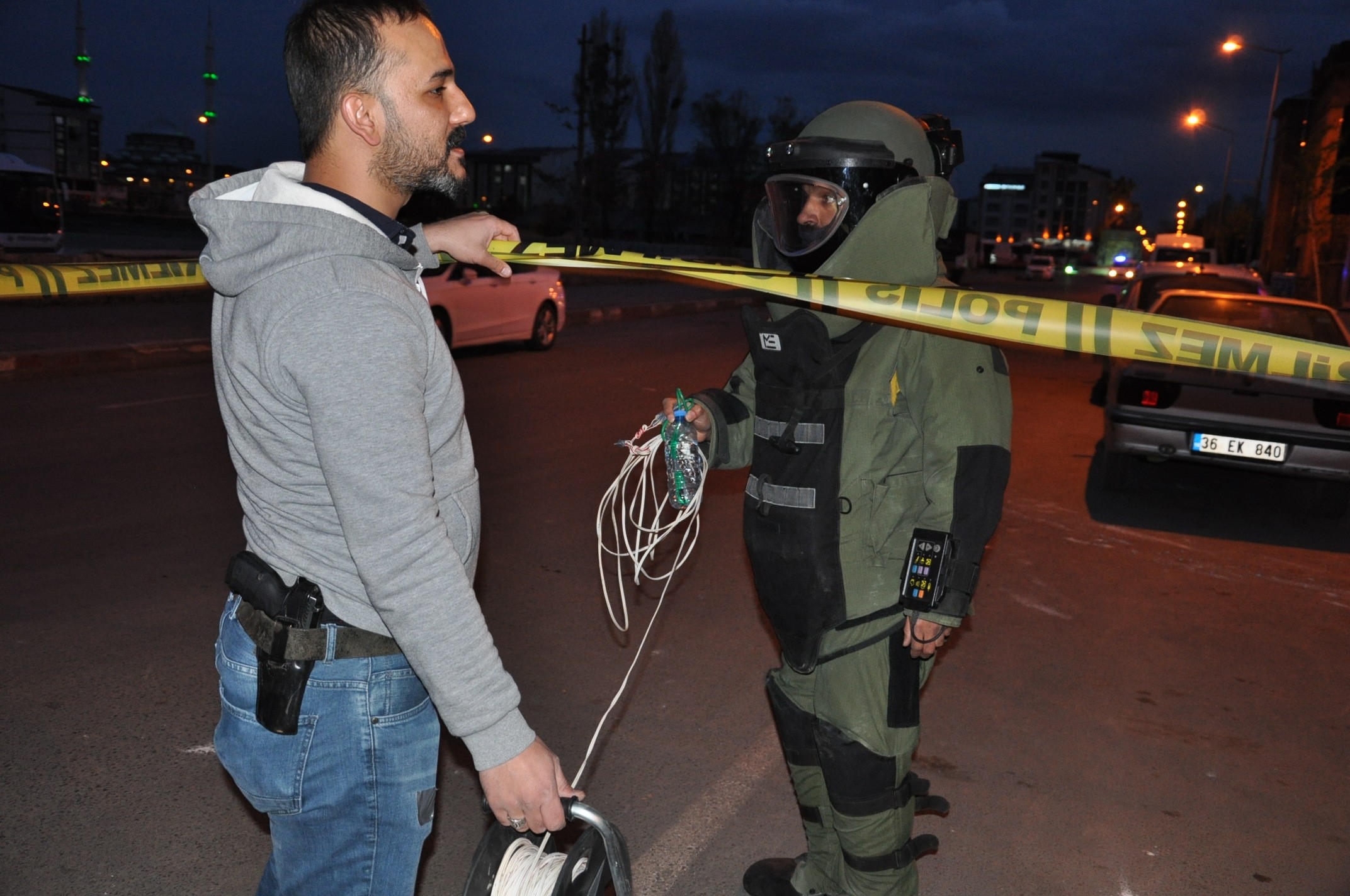 Bunun üzerine harekete geçen polis, olay yerine gelerek güvenlik önlemi aldı. Caddeyi araç ve yaya trafiğine kapatan polis, olay yerine Bomba İmha Uzmanını çağırdı. Olay yerine gelen bomba imha uzmanı özel giysisini giydikten sonra, kaldırım üzerinde bulunan şüpheli çantanın yanına giderek fünye yerleştirdi. Çevre güvenliği alındıktan sonra şüpheli çanta fünye ile uzaktan fünye ile kontrollü olarak patlatıldı. Patlatılan çantanın içerisinde kitap ve giysi çıktı. Çantadan çıkan malzemeler poşete konularak polis merkezine götürüldü.