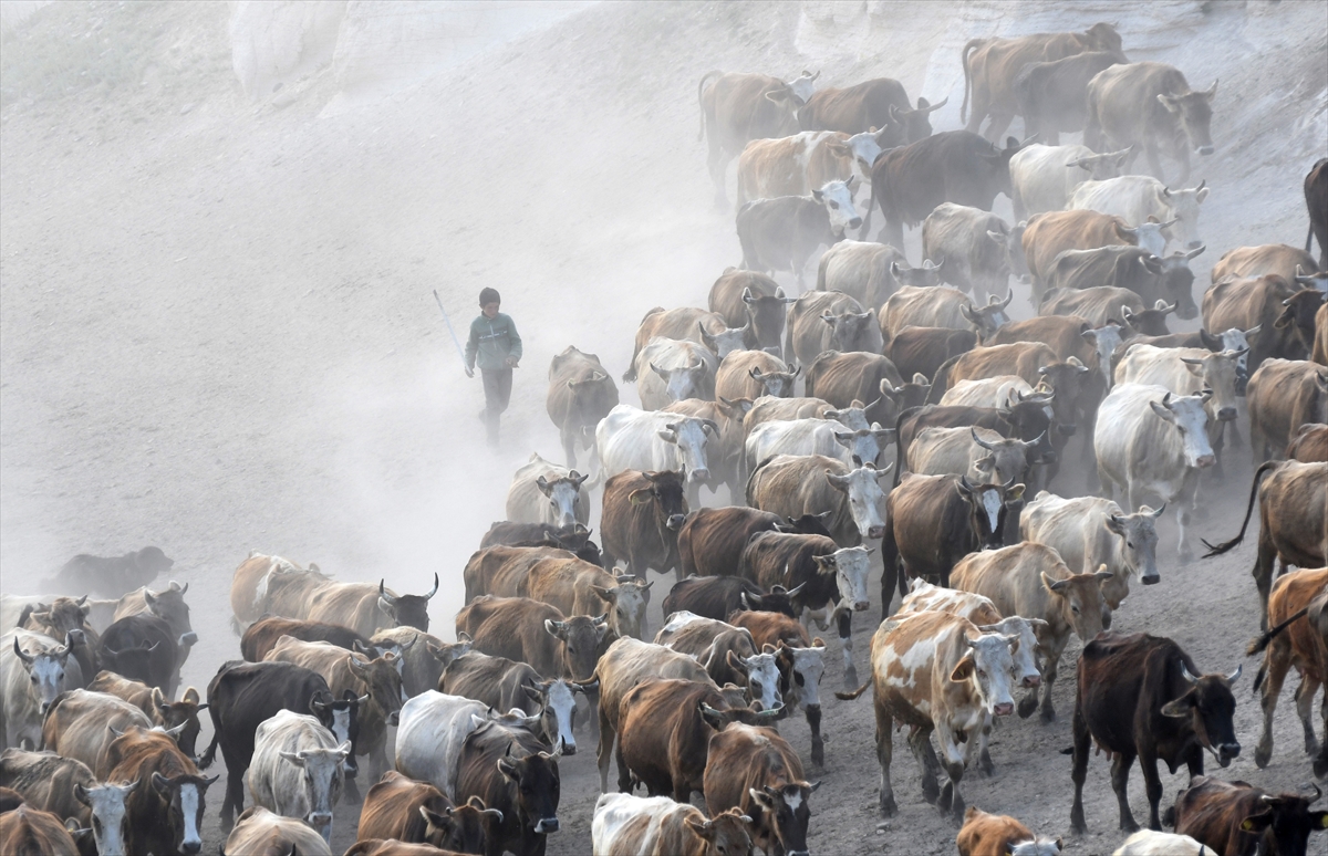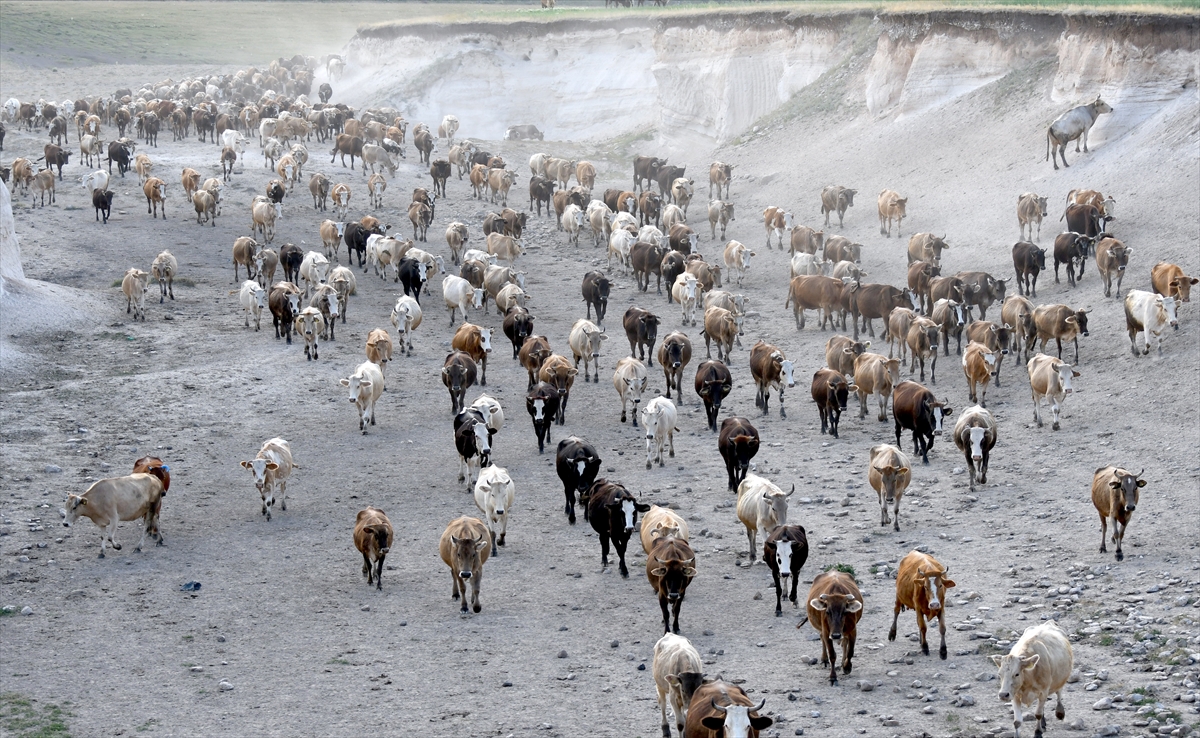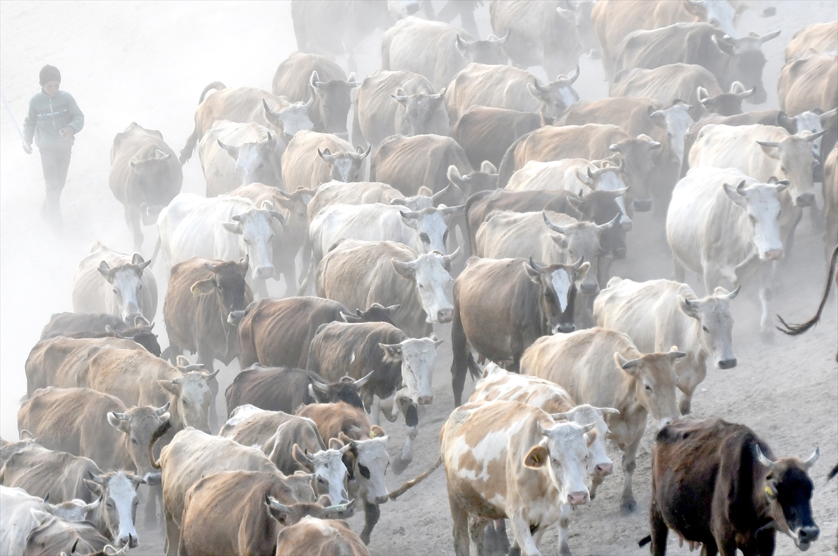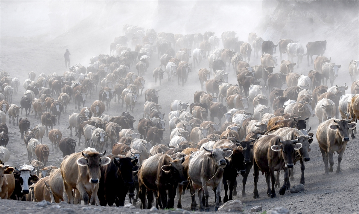 Türkiye'de hayvan yetiştiriciliğinde önemli yere sahip Kars’ta hayvan besicileri büyükbaş hayvanlarını meraların yüksek kesimlerinde otlatmaya başladı. Kars'ın Sarıkamış ilçesine bağlı Alisofu köyünde yaz aylarında hayvanlarını otlatmak için 2 bin 500 rakımlı meralara çıkaran çobanlar, her gün yüzlerce süt ineğini otlattıktan sonra 5 kilometre yol kat ederek süt sağımı için köye dönüyor. Akşam saatlerinde köye dönüş yolunda tozlu tilki kanyonundan geçen inek sürüsü eşsiz görüntüler sunuyor.