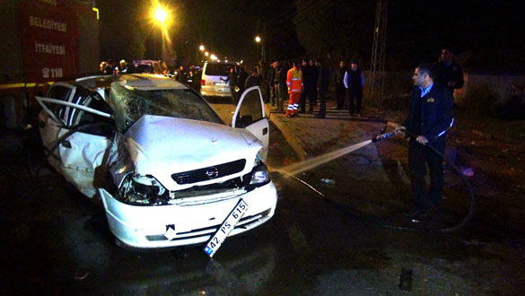 Yol bir süre trafiğe kapatılırken itfaiye ekipleri de araçlarda meydana gelebilecek olası yangını önlemek için köpüklü suyla müdahale etti.