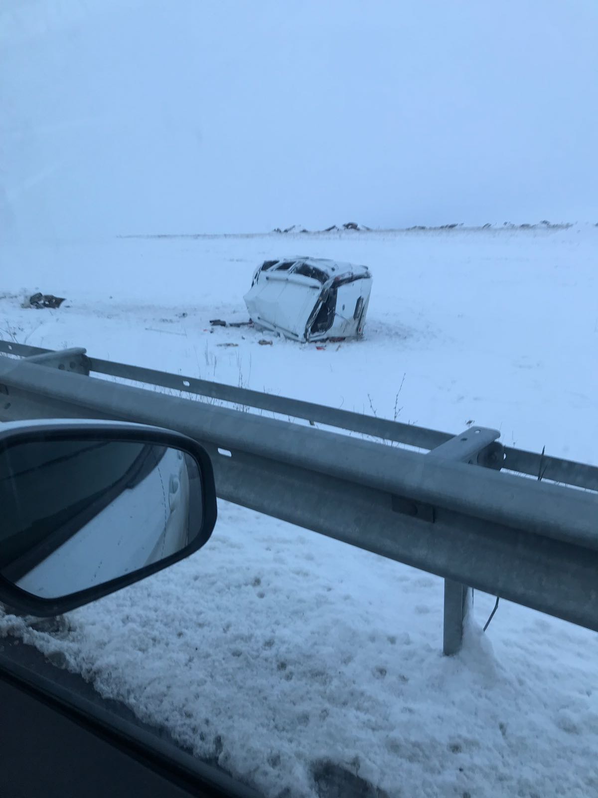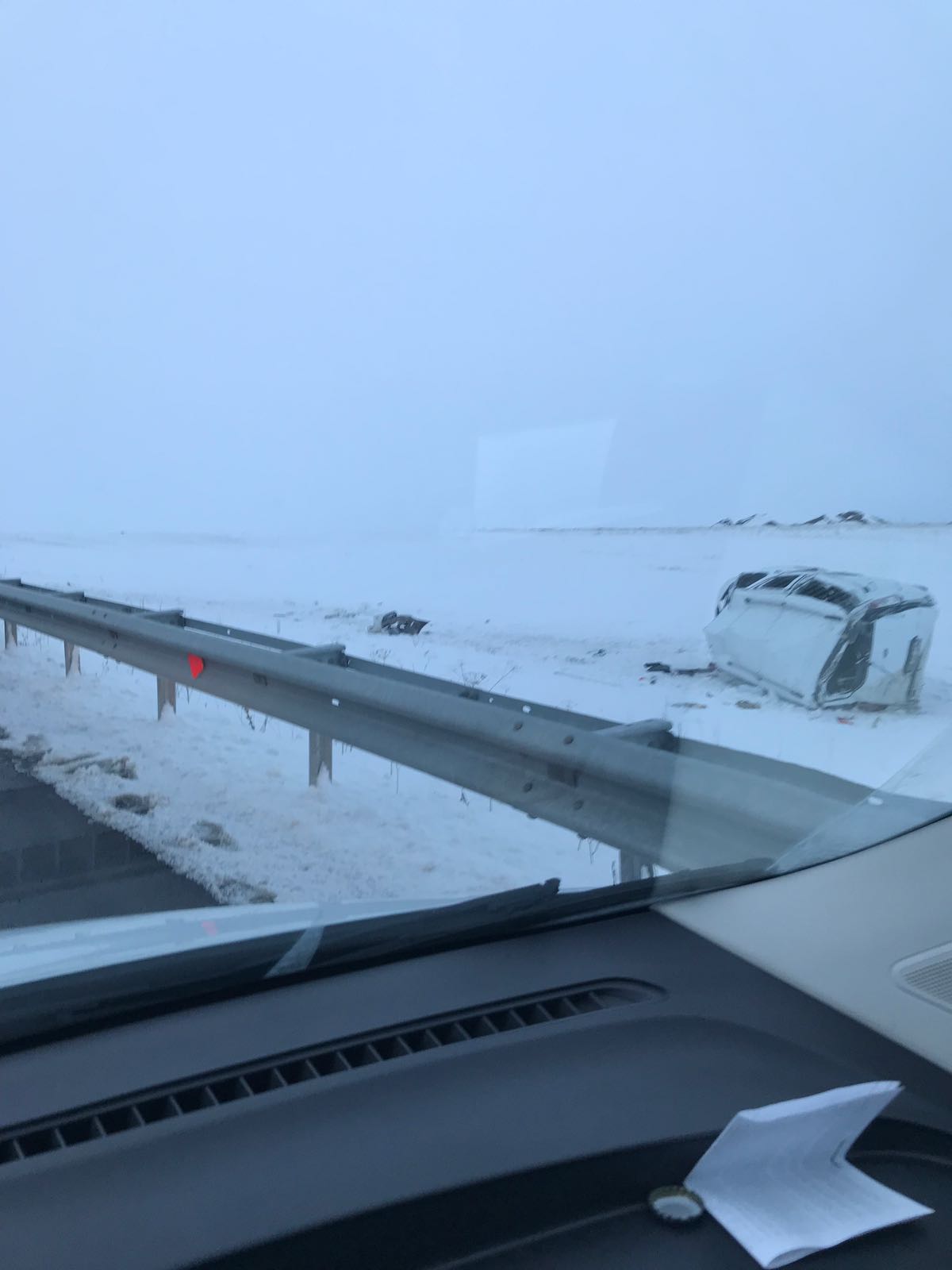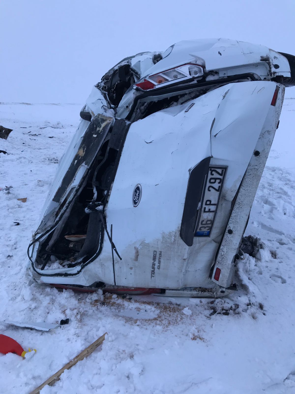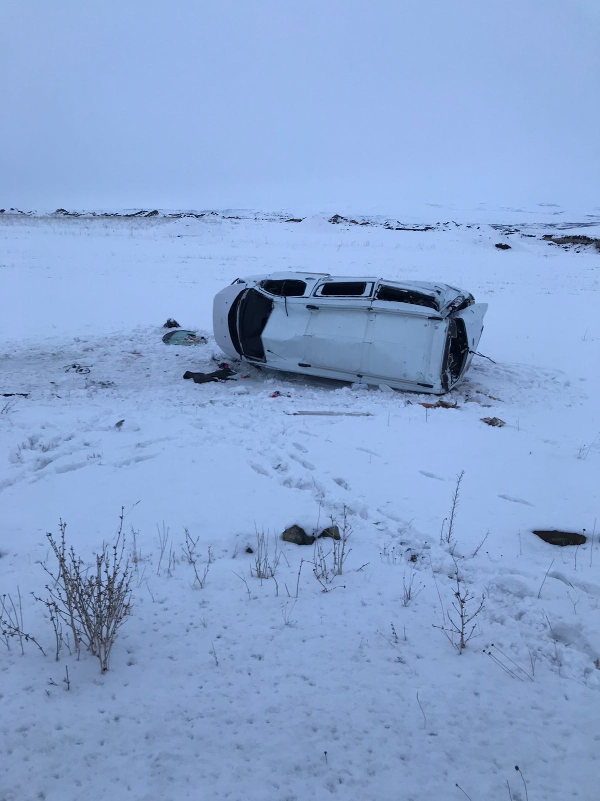Kaza, Kars-Arpaçay yolunda meydana geldi. Arpaçay'dan Kars istikametine seyir halindeki 36 FP 292 plakalı minibüs, kar ve buzlanma dolayı takla atarak yoldan çıktı.