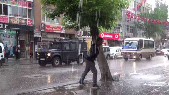 Kars’ta yağışlı hava etkisini sürdürüyor. Kente rüzgar ile birlikte başlayan yağmur, havanın da soğumasıyla birlikte yerine doluya bıraktı. Bir süre dolu şeklinde etkili olan yağış, vatandaşlara zor anlar yaşattı. Yağmur ve doludan korunmak isteyen vatandaşlar iş yerlerinin önüne ve dolmuş duraklarına sığındı. Sağa-sola kaçarak sığınacak yer arayan vatandaşlar ıslanmaktan kurtulamadı.