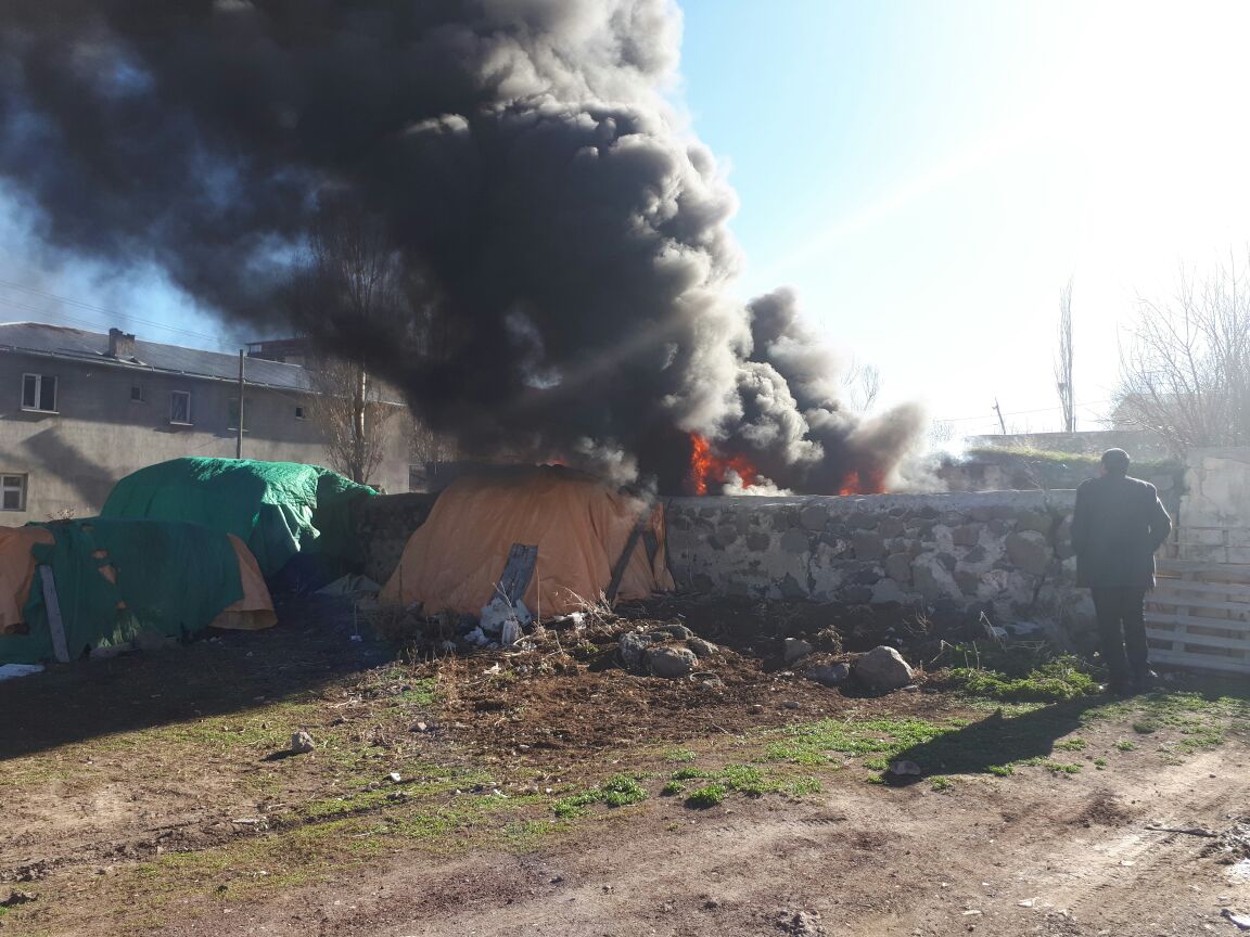 Kars’ta Bülbül Mahallesi’nde bir gecekonduda da çıkan yağın paniğe neden oldu.