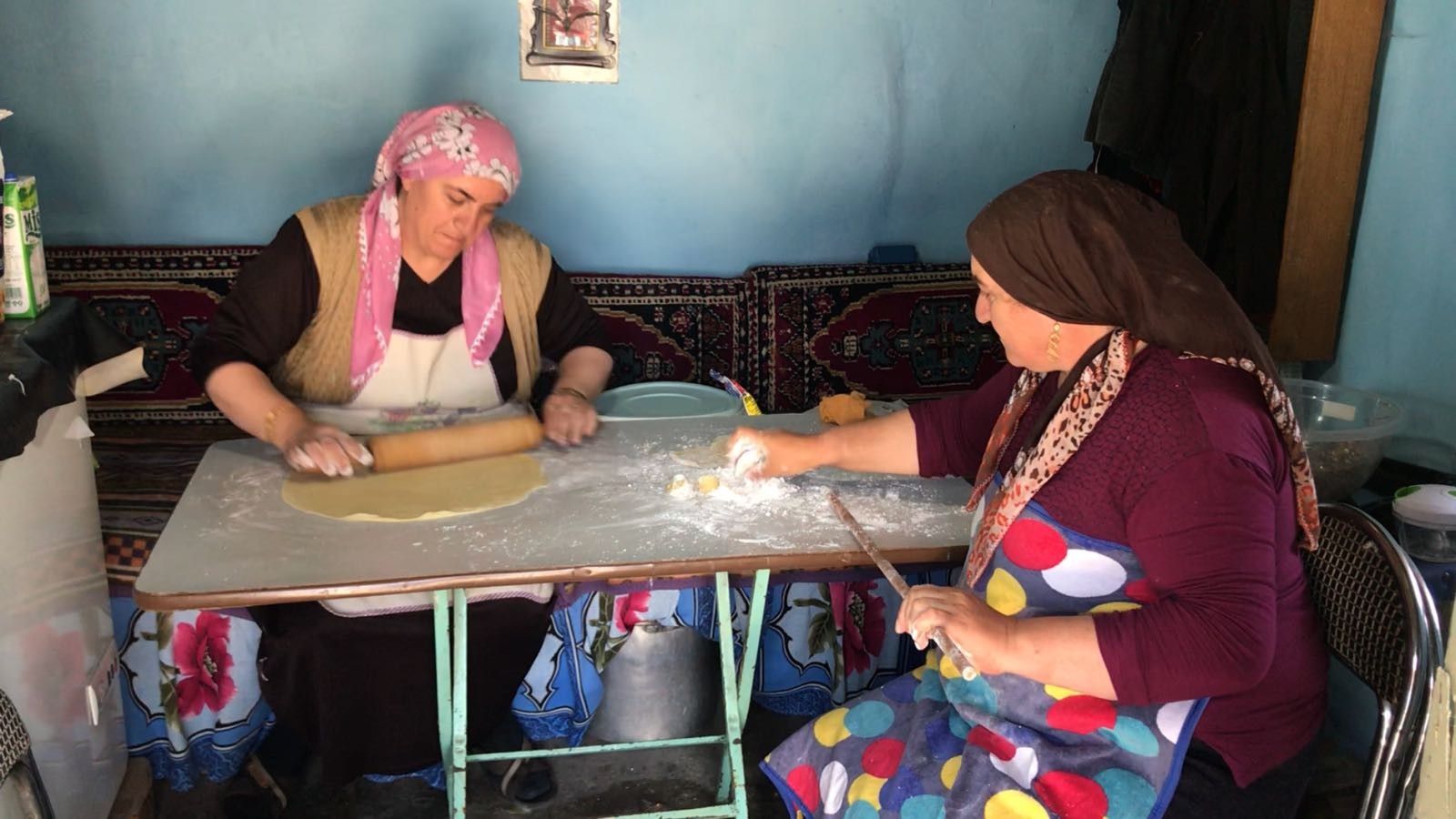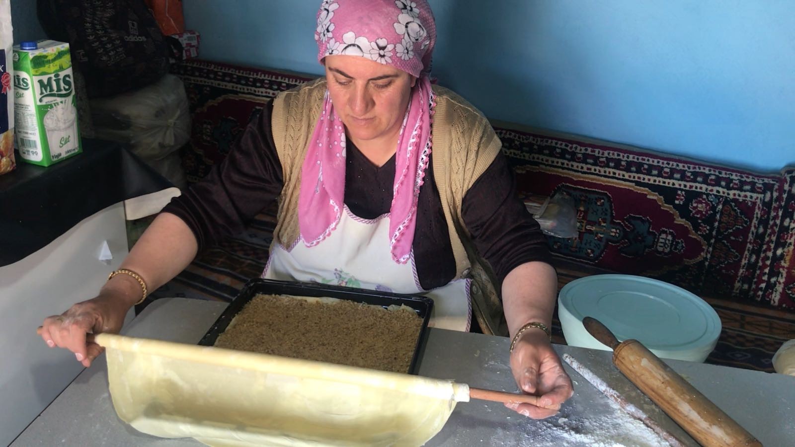 Yıldırım, “Kurban Bayramı nedeniyle baklava, kete, ve su böreği yapıyoruz. Komşularımız gelip yardım ediyorlar biz gidip onlara yardım ediyoruz. Komşularla birlikte bayram hazırlığımızı yapıyoruz. Küçük yaştan beri annemizden baklava yapmayı öğrendik komşularla birlikte hep beraber neşeli neşeli hazırlıklarımızı yapıyoruz.” dedi.