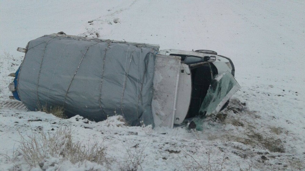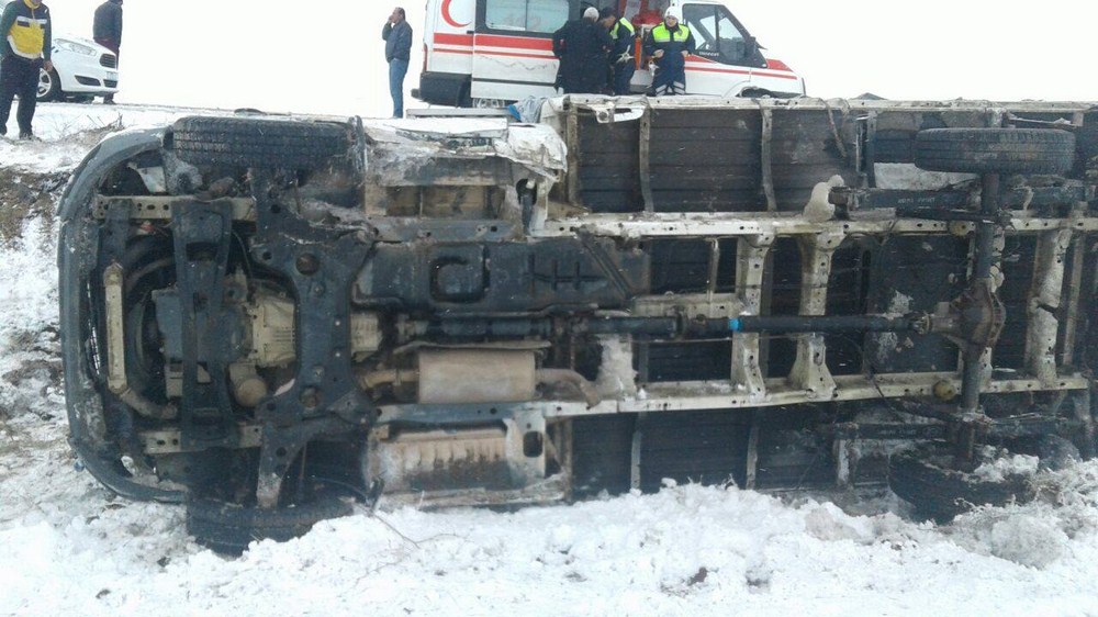 Kars’ın Selim ilcesine bağlı Sarıgün köyünden Kayseri’ye hayvan alış-verişi yapmak için giden Tolgahan Bastanban yönetimindeki 31 TL 828 plakalı kamyonet Kayseri’ye 2 kilometre kala yolun kaygan olması nedeniyle 3 takla atarak şarampole yuvarlandı.
