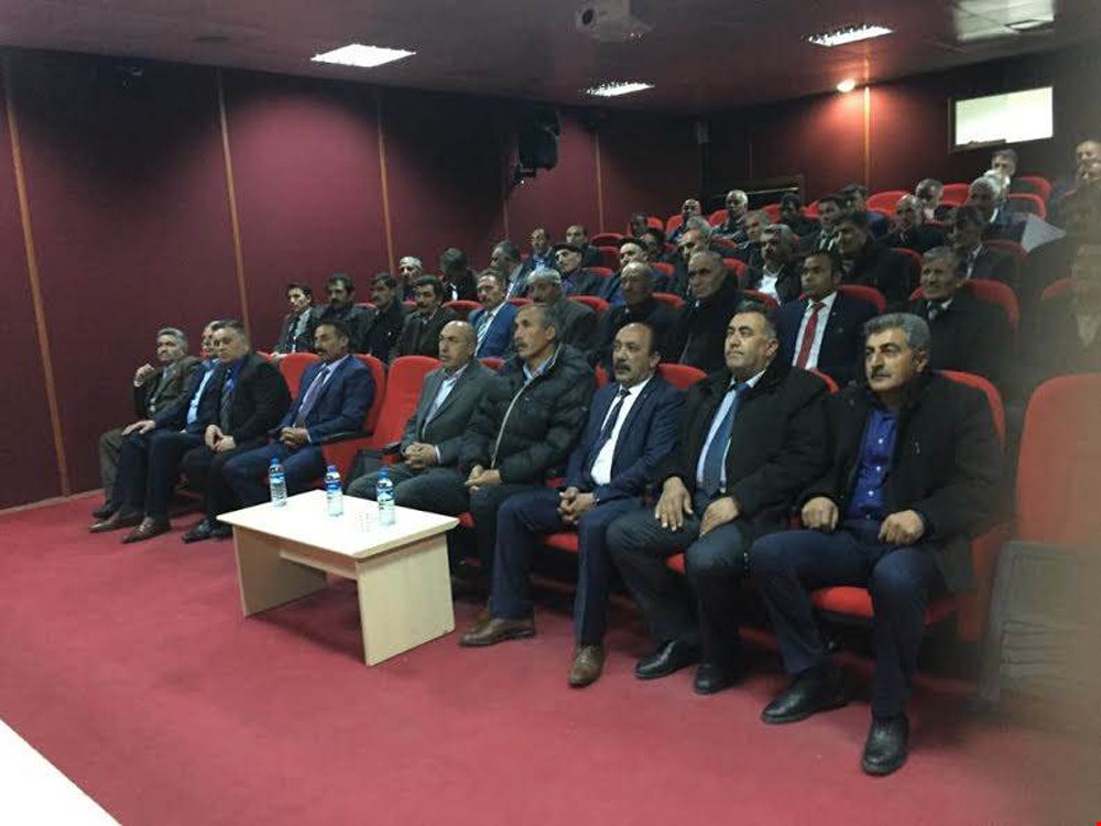 Halk Eğitim Merkezi Toplantı Salonu’nda düzenlenen toplantıya Yazı İşleri Müdürü Necip Demirbaş, Özel İdare Müdürü Kurban Emir 3 mahalle muhtarı ve 53 köy muhtarı katıldı.