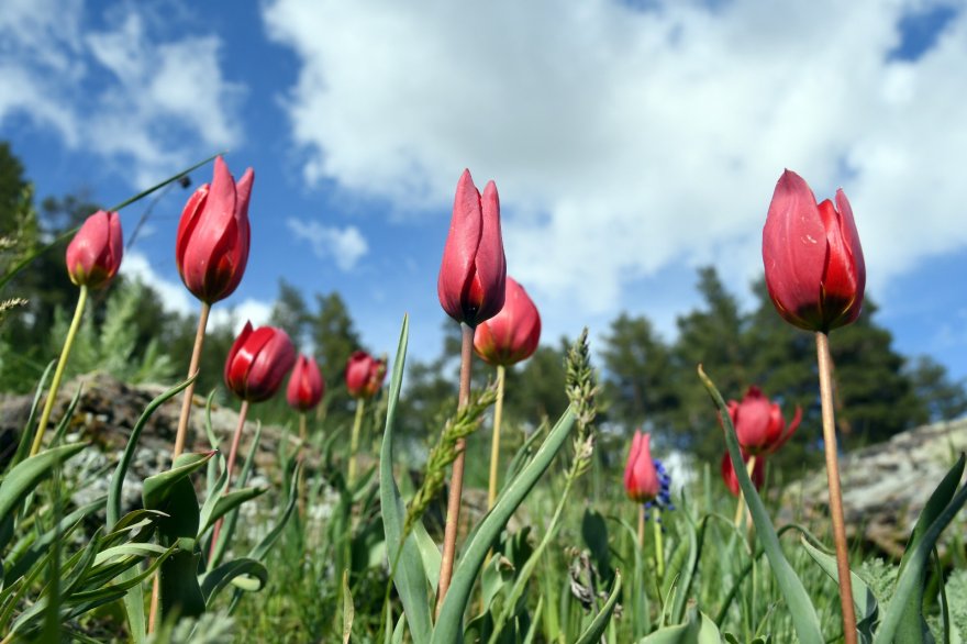 Bu fırsatı değerlendiren doğa fotoğrafçıları, laleler ile yöredeki doğal güzelliklerin fotoğrafını çekmenin keyfini yaşıyor.