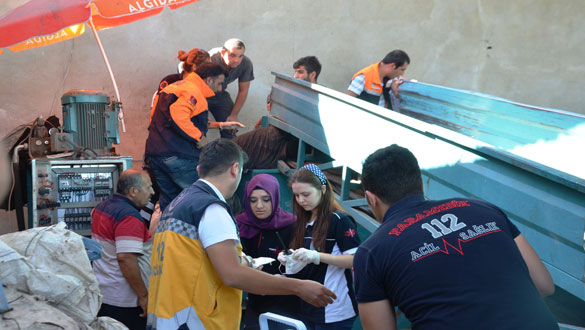 Edinilen bilgilere göre olay, öğle saatlerinde çevre yolundaki hurda toplama işletmesinde meydana geldi. Toplan hurdaları presleyen Mahmut Yavuz isimli (19) işçi, kolunu banda kaptırdı. Bantta sıkışan işçiyi olay yerine çağrılan