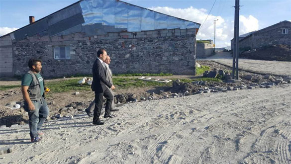 Alisofu Köyü’nde yapılan çalışmaları yerinde görmek ve bir takım incelemelerde bulunmak üzere gelen Kaymakam Erdinç Dolu, kilit parke yolu kontrol ederek, gördüğü aksaklıkların hemen düzeltilmesini istedi.
