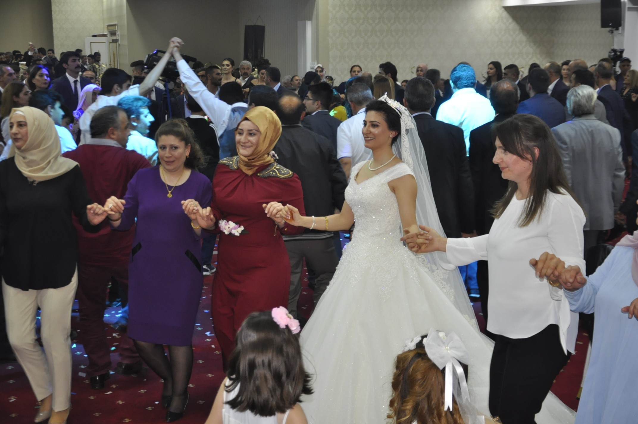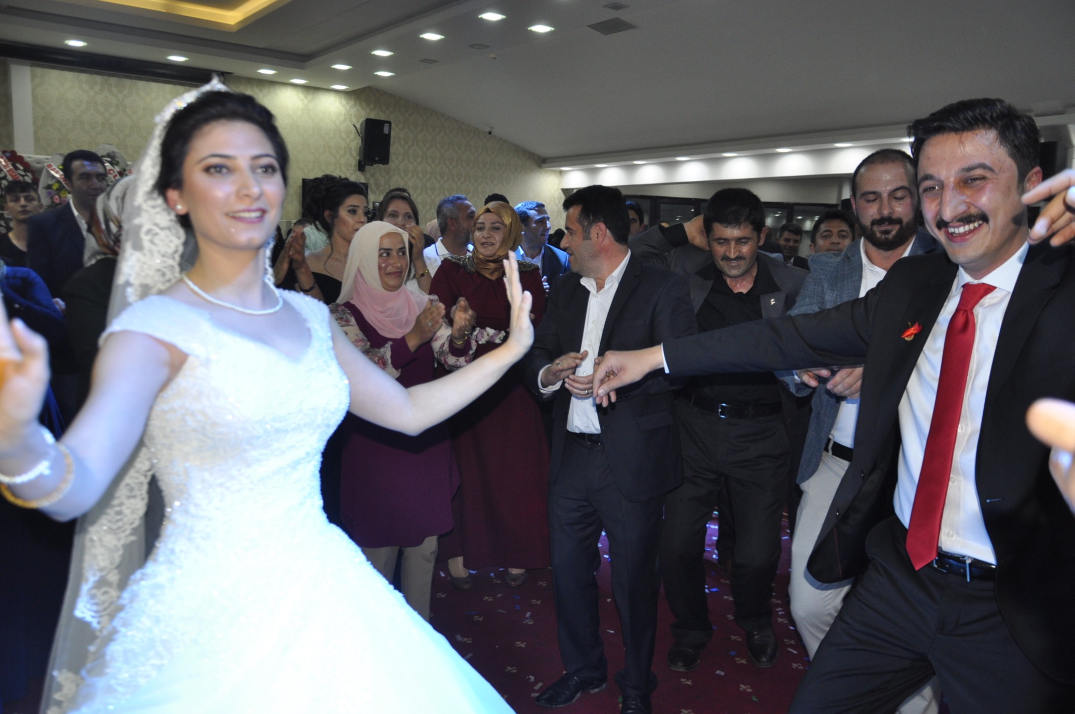 Yoğun katılımın olduğu gecede salon defalarca dolup boşalırken, gelin Ebru Aküzüm’ün Engelsiz Yaşam Merkezinde kalan öğrencileri ve arkadaşları da kendisini yalnız bırakmayarak saatlerce birlikte halay çekti.