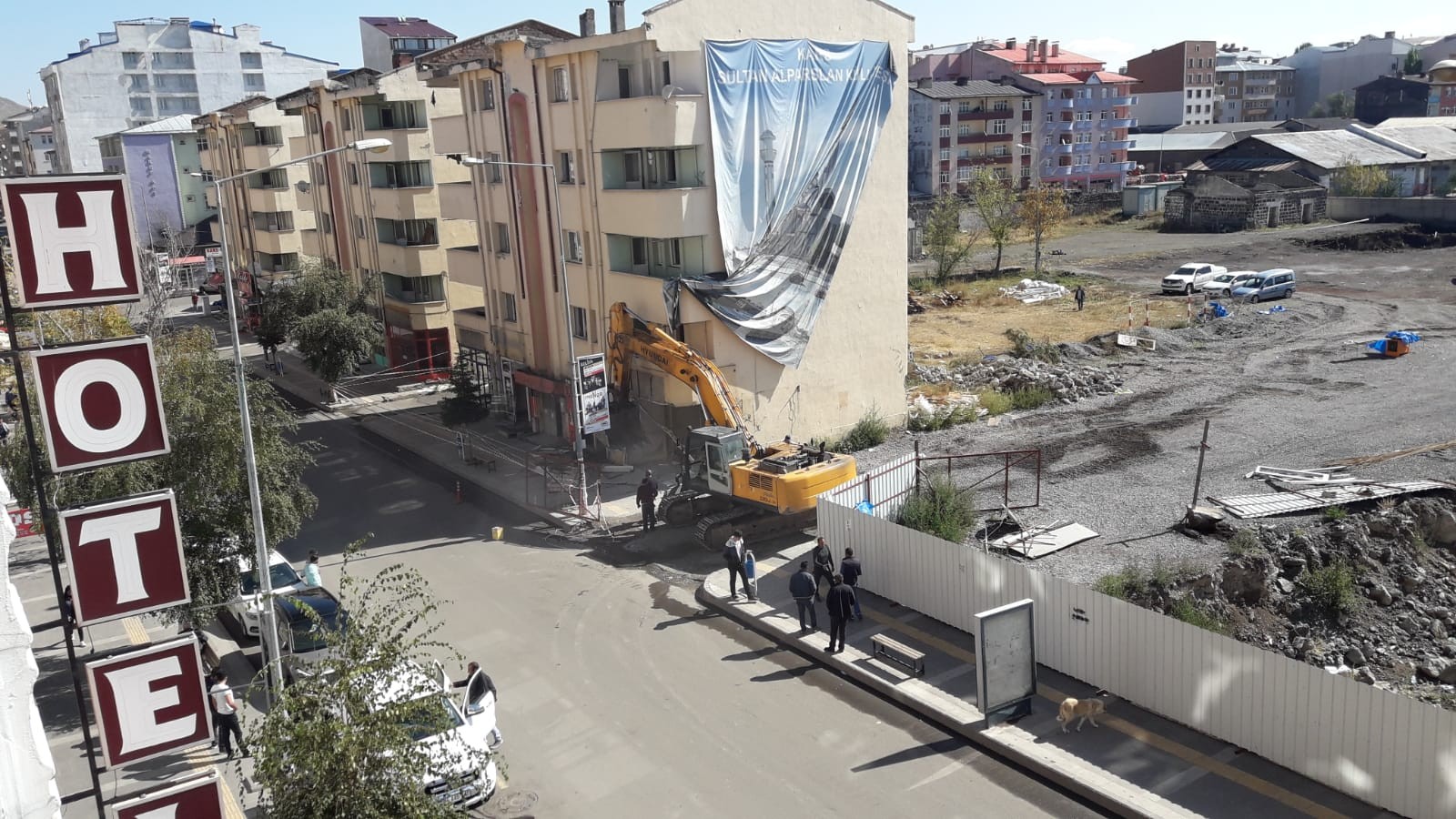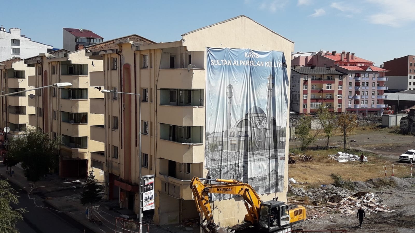 Kars’ta Faikbey Caddesi üzerinde yapımına başlanılan Sultan Alparslan Külliyesi inşaatında bulunan binaların yıkımına başlandı.