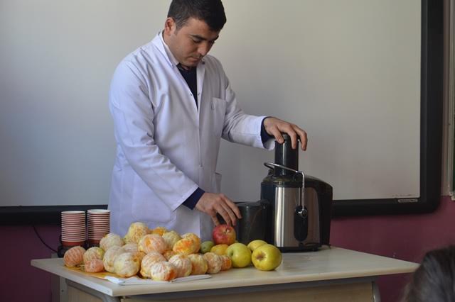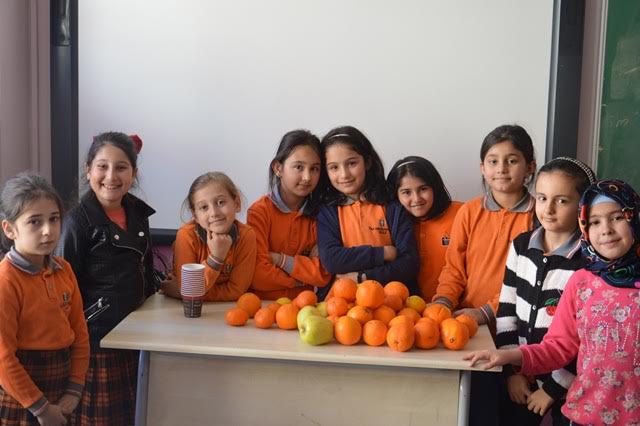 Özel Sultan Alparslan Eğitim Kurumları 3-B Sınıfı Öğrencileri kendi yaptıkları doğal meyve suyunu içerek doğal meyve suyu tüketmenin önemini vurgulamış oldular.