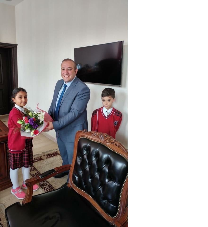 Minik öğrenciler Kaymakam Karaman’a çiçek takdim etti. Bir süre makamda kalan öğrenciler Kaymakam Karaman ile sohbet etti.