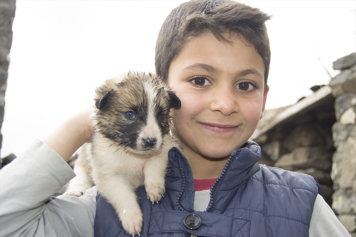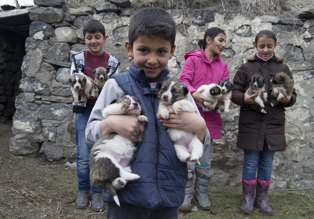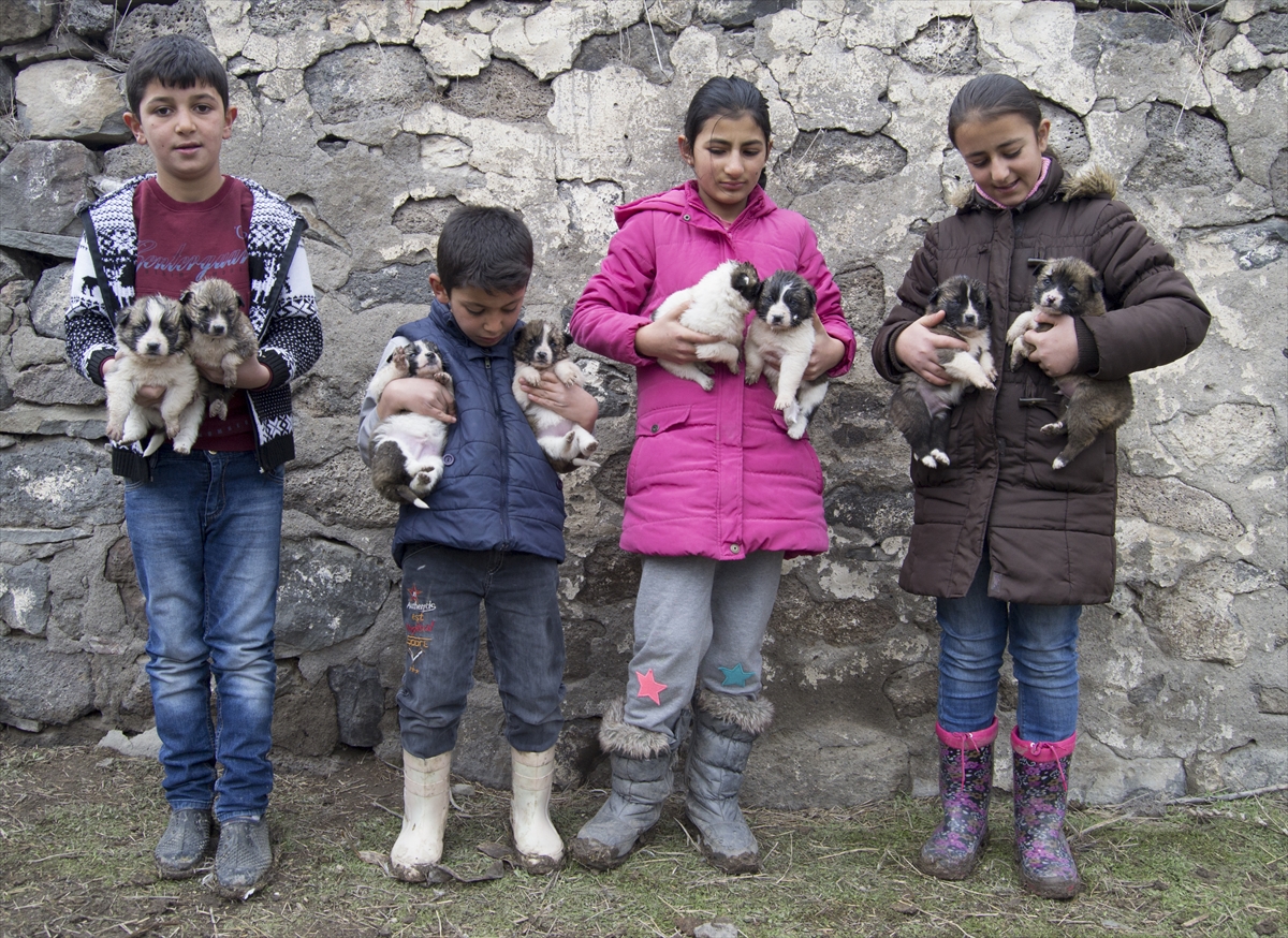 Kars'ın Arpaçay ilçesinde dört çocuk, oyun oynarken harabe bir evde buldukları yeni doğmuş köpek yavrularını sahiplendi.