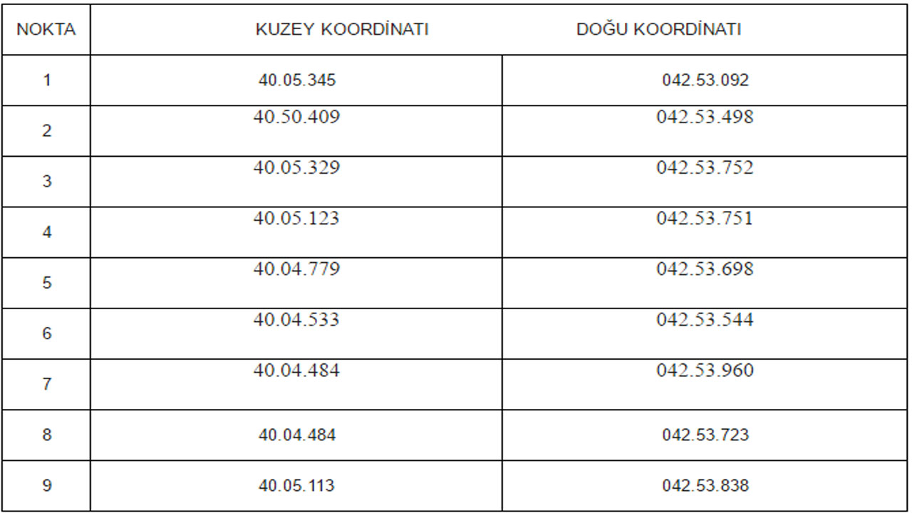 KUZEY KOORDİNATI DOĞU KOORDİNATI