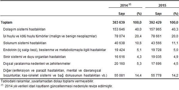 Ölüm nedenlerinin dağılımı, 2014 – 2015