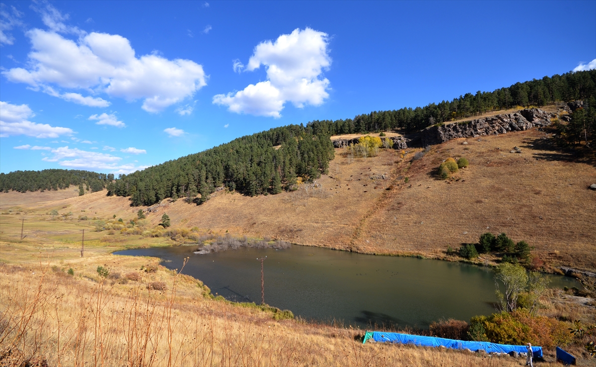 Kars'ın Sarıkamış ilçesinde Keklik Vadisi'nde bulunan Ördek Gölü, sonbaharla birlikte görsel şölen sunuyor