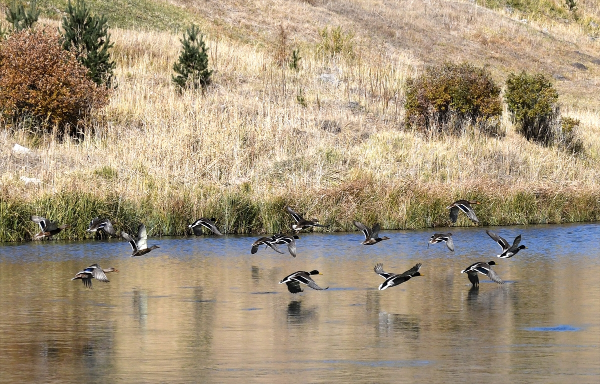 Kars'ın Sarıkamış ilçesindeki Keklik Vadisi'nde bulunan Ördek Gölü, sonbahar mevsimiyle birlikte ziyaretçilere görsel şölen sunuyor.