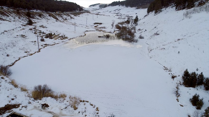 Bölgede etkili olan kar yağışı ve soğuk havanın ardından ilçe merkezine 10 kilometre uzaklıktaki Keklik Deresi mevkisinde yer alan Ördek Gölü'nün yüzeyinin büyük bölümü buzla kaplandı.