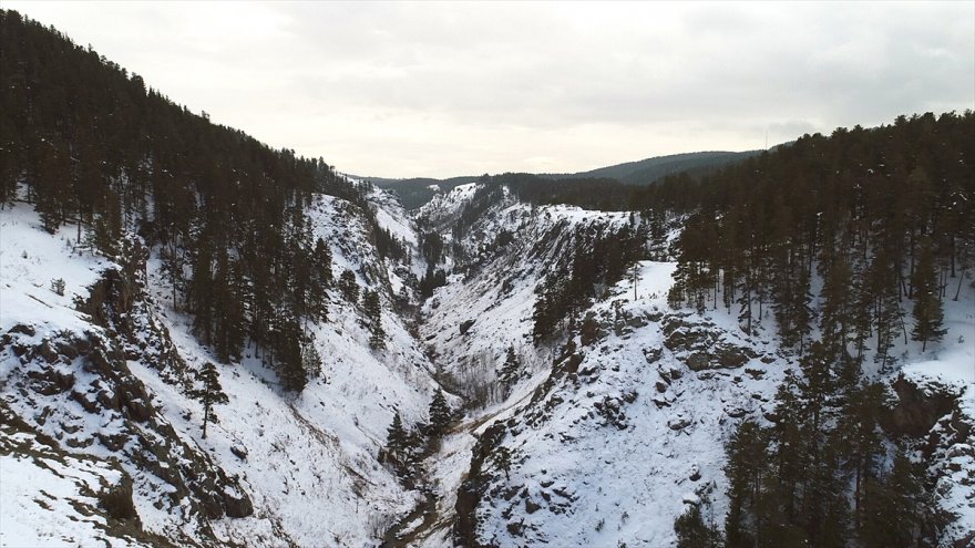 Sarıçam ormanlarıyla çevrili olan gölün çevresinin kar, yüzeyinin de buzla kaplı olması doyumsuz manzaralar oluşturdu.