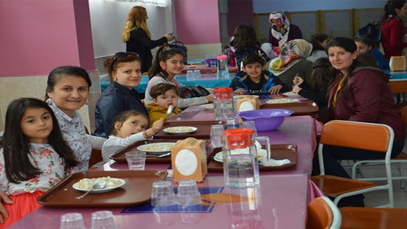 Özel Burhanettin Akhan İlkokulu-Ortaokulu’nda Güzide Anneleri önce afiyetle mantılarını yerken daha sonra çeşitli video, slayt ve şiirlerle hem güldüler hem de hüzünlendiler.