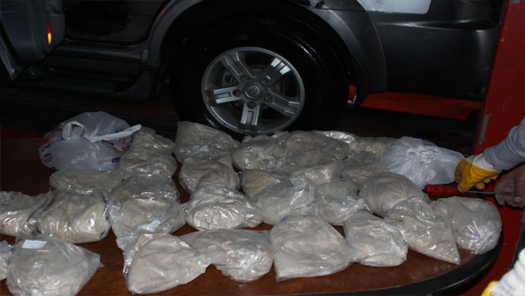Kars Emniyet Müdürlüğü, KOM Şube Müdürlüğü ve Uyuşturucu ile Mücadele Şube Müdürlüğü görevlilerince kaçakçılığı önlemek amaçlı yürütülen çalışmalarda, durumundan şüphelenilen 06 XXX XX plaka sayılı araç il girişinde durduruldu.