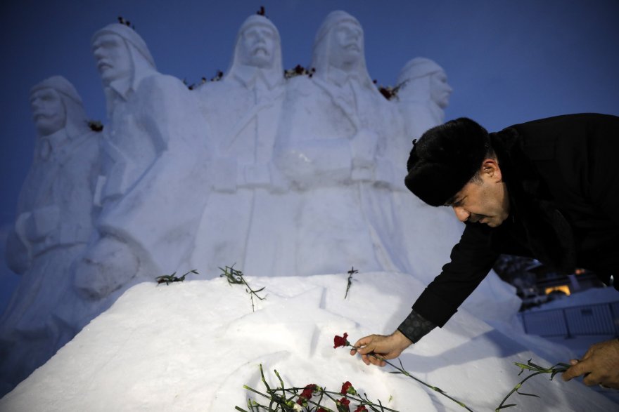 Kars Serhat Boyları Derneği Başkanı Muharrem Yıldız ve beraberindekiler, “103'üncü Sarıkamış Şehitleri Anma Etkinleri” kapsamında Allahuekber Dağları eteklerinde gece eksi 15 derecede nöbet tutup, sabah erken saatlerde şehitleri anma yürüyüşüne katıldı. Nöbetten önce üniversite öğrencilerinin Sarıkamış Cıbıltepe Kayak Merkezi'nde Sarıkamış şehitleri anısına yapmış olduğu kardan asker heykellerinin bulunduğu alana karanfiller bırakıldı. Kars Serhat Boyları Derneği Başkanı Muharrem Yıldız, ''Buradaki gayretler ve çabalar, Sarıkamış şehitlerini unutmamak, unutturmamak için hocalarımızın ve öğrencilerimizin haftalarca çalışmasından ortaya çıkan kardan heykellerimiz'' dedi.