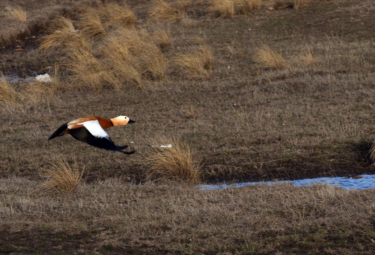 Türkiye'nin en yüksek yerleşim yerlerinden olan Kars'ın Sarıkamış ilçesinde havaların ısınmasıyla doğa renklenirken, göçmen kuşlar da meralarda görsel şölen oluşturdu