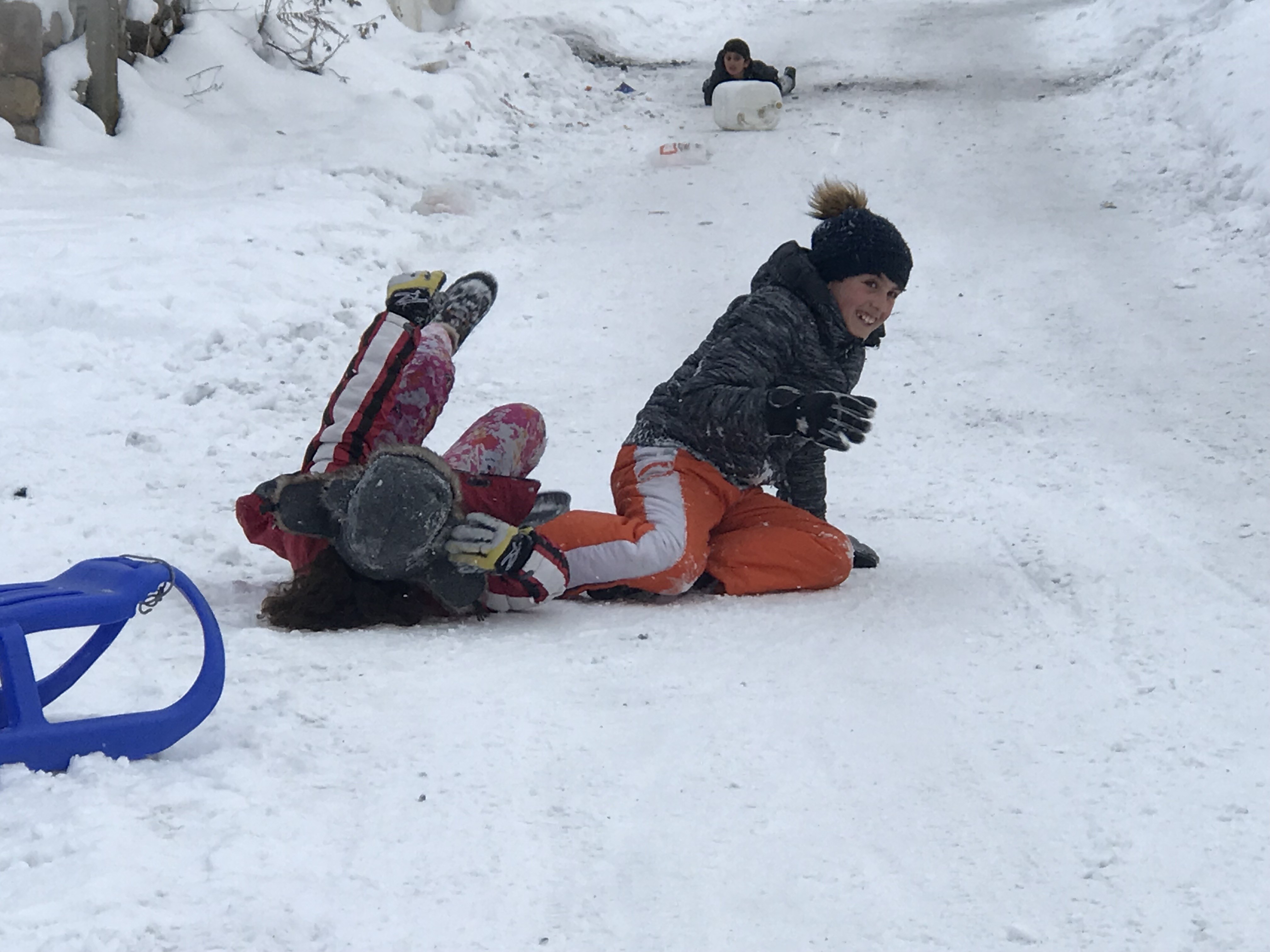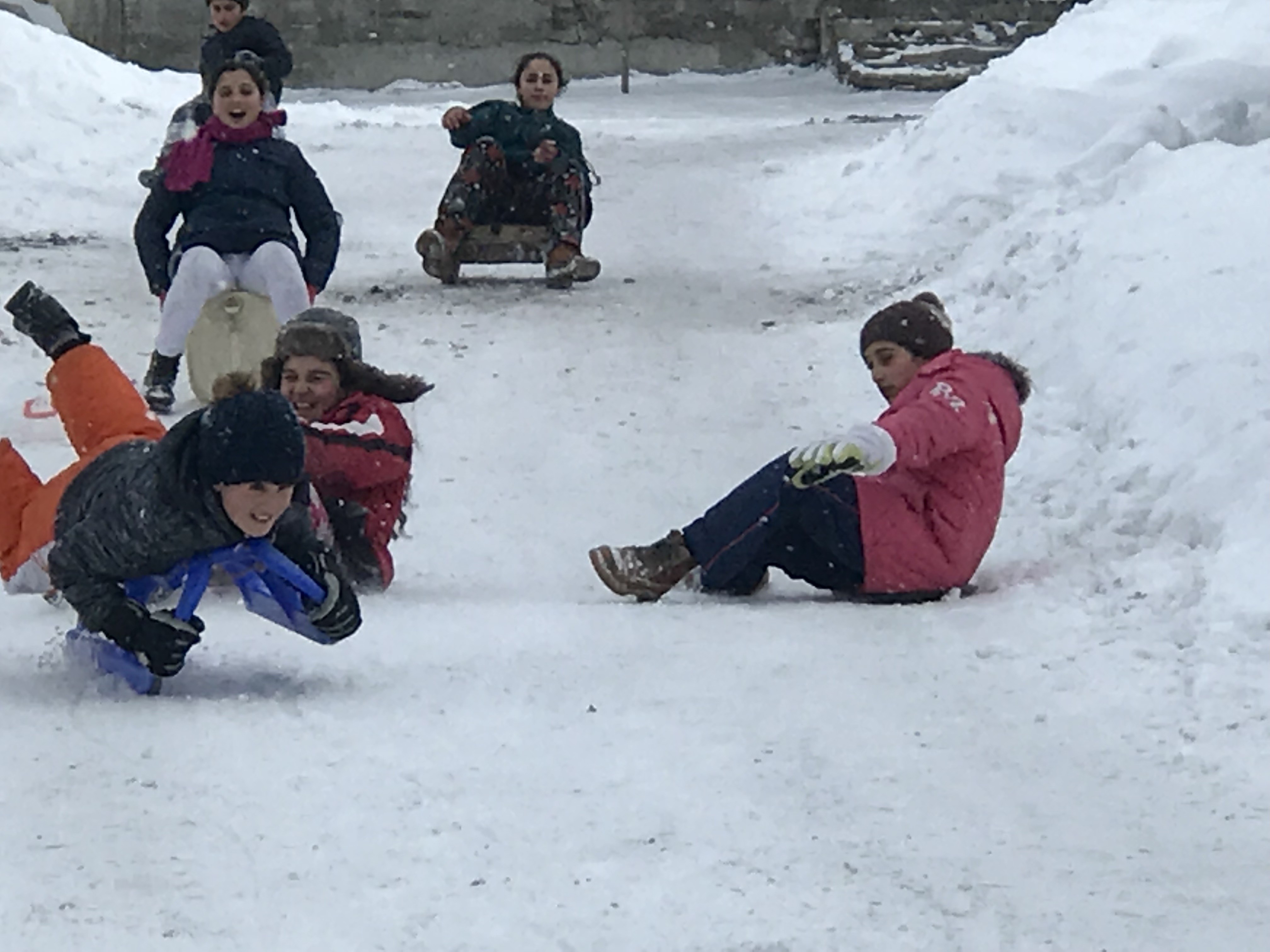Defalarca yorulmadan yokuş yukarı çıkarak kayan çocuklar, kaydıktan sonra da bir birleriyle kar savaşı yaptı. Ellerine aldıkları karı bir birlerine atan çocuklar yorulduktan sonra evlerinin yolunu tuttu.