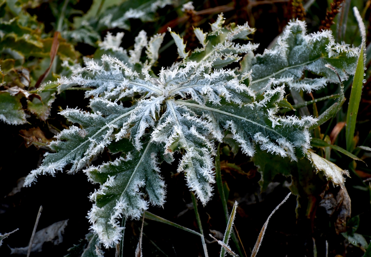 Soğuk nedeniyle camlar ve bitkilerin kırağıyla kaplanması seyirlik görüntüler oluşturdu