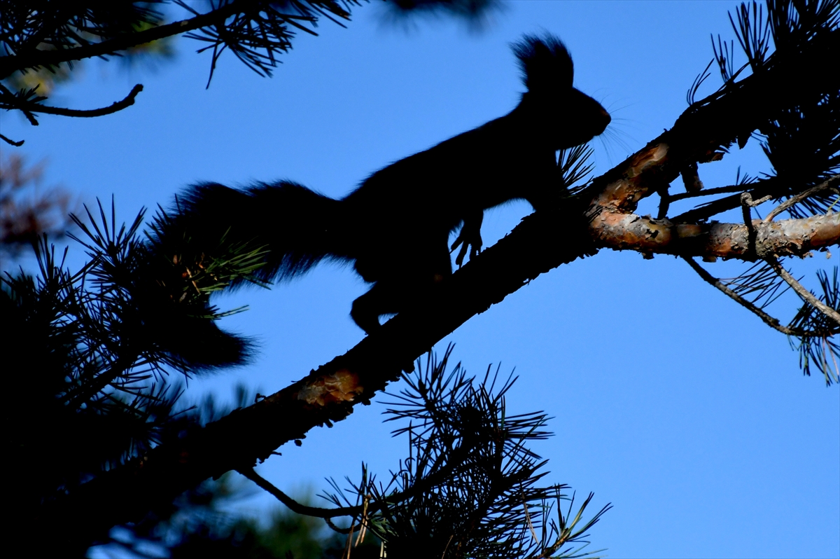 Ormanlık alanda yiyecek arayan kuşlar ve sincaplar ise ilginç görüntüler oluşturdu.