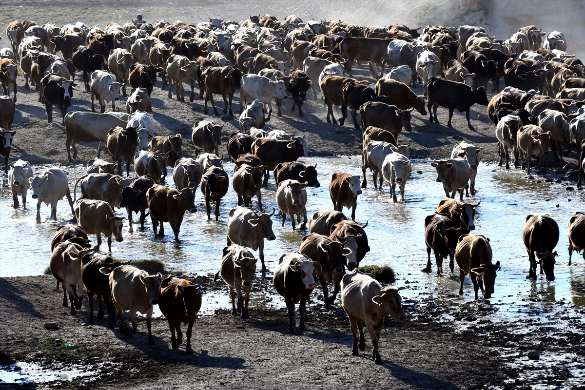 Hava sıcaklığının 30 dereceleri bulması, meralarda otlayan hayvanların su içtiği küçük göletlerin kurumasına sebep oldu.