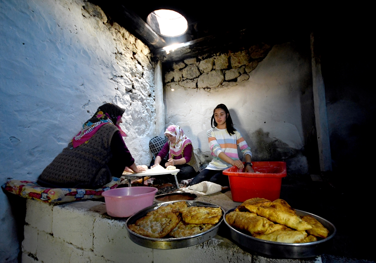 "Tandırları hem iftar hem de sahurda yenilen yemekler için yaktık. Geceden hamurumuzu hazırlayıp, dinlenmeye bıraktık. Sabah tandırı yaktık, önce ekmek için hamurları yufka haline getirip pişiriyoruz. Ardından tandır üzerine konulan tava veya sac üzerinde öncelikle iftarda yiyeceğimiz velibah, su böreği, hunk daha sonra sahurda yiyeceğimiz bişi, kete gibi yemekleri hazırlıyoruz."