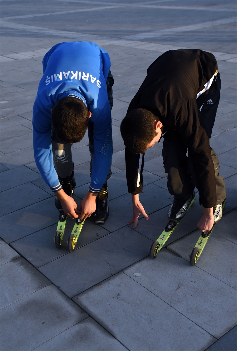 Milli sporcu Yusuf Emre Fırat ise 2018'de yapılacak olimpiyatları hedeflediğini belirterek, "Olimpiyatlara sıkı bir antrenman programı ile hazırlanıyorum. Tabii asfalt pist olsa batonlarla daha teknik çalışıyoruz. Ama şimdi tören alanında baton kullanamıyoruz, yalnız kayakla çalışmak durumundayız." ifadelerini kullandı.