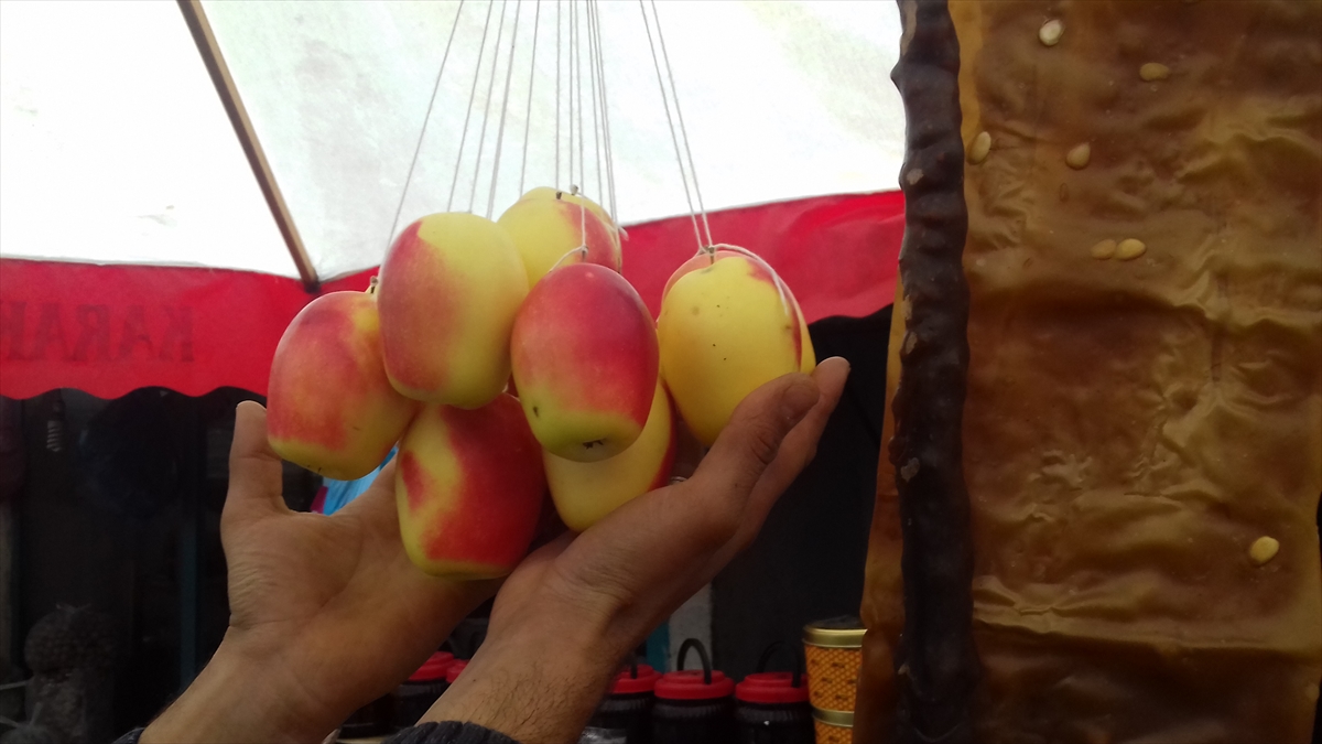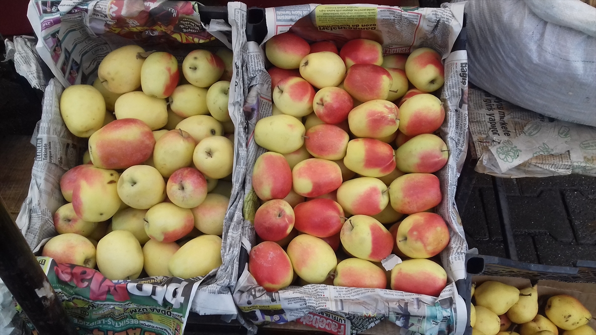 Türkiye'de sadece Kars'ın Kağızman ilçesinde yetiştirilen ve şekli yüzünden "uzun elma" olarak nitelendirilen elma, tezgahlarda satışa sunuldu.