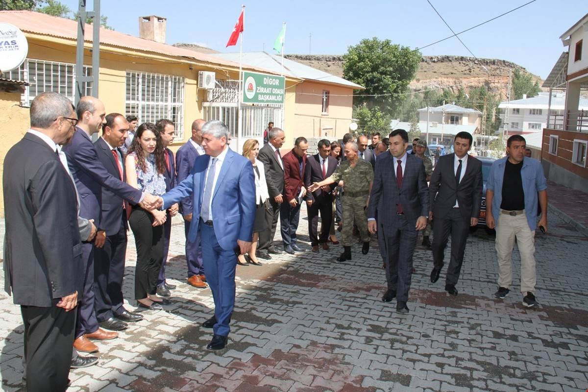 Vali Rahmi Doğan, çeşitli incelemelerde bulunmak ve ilçe muhtarları ile düzenlenen toplantıya katılmak üzere geldiği Digor’da, önce vatandaşlarla bir araya geldi. İlçe merkezinde esnafla buluşan Doğan, devletin bütün imkanlarını vatandaşlara hizmet etmek için seferber ettiklerini belirtti.