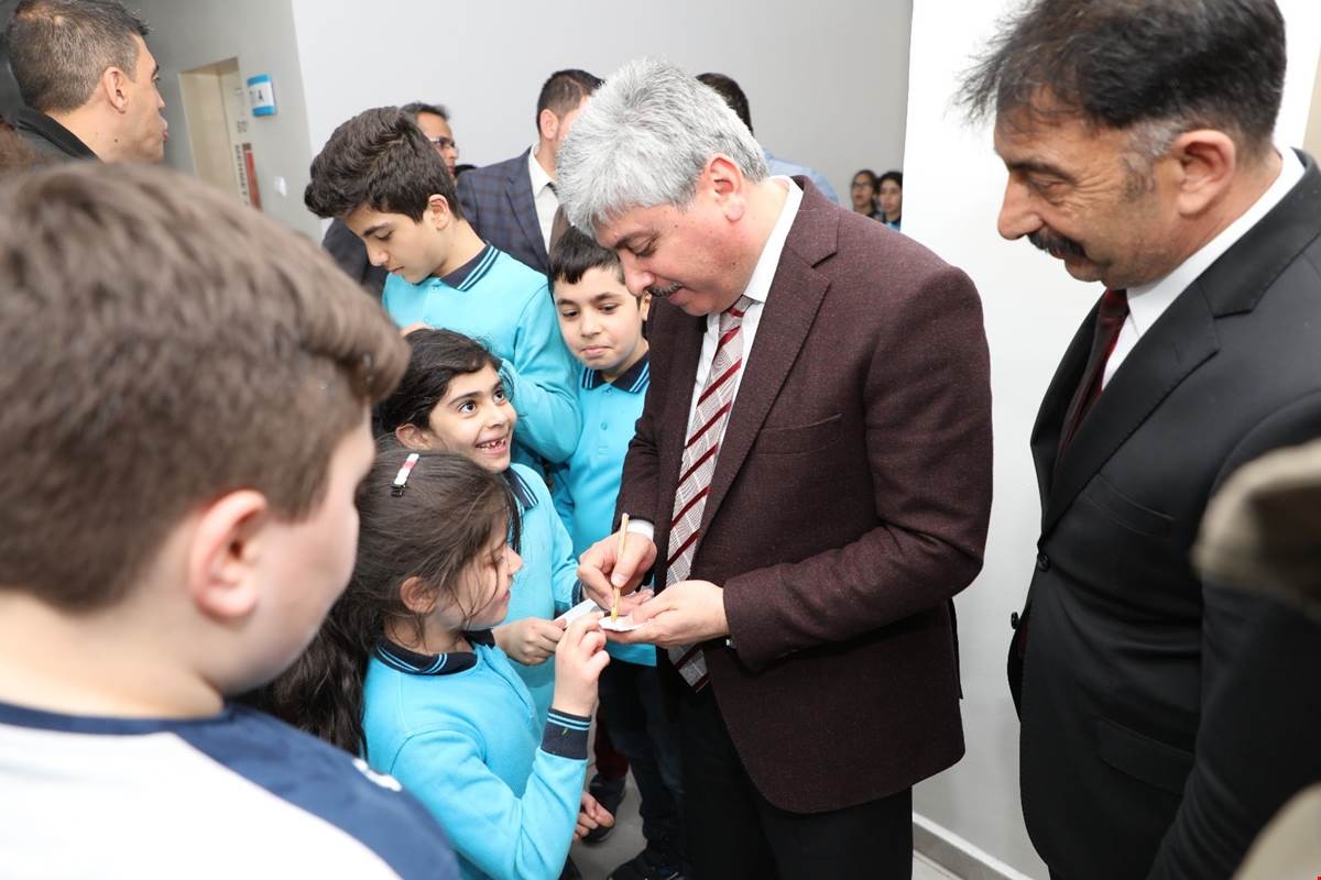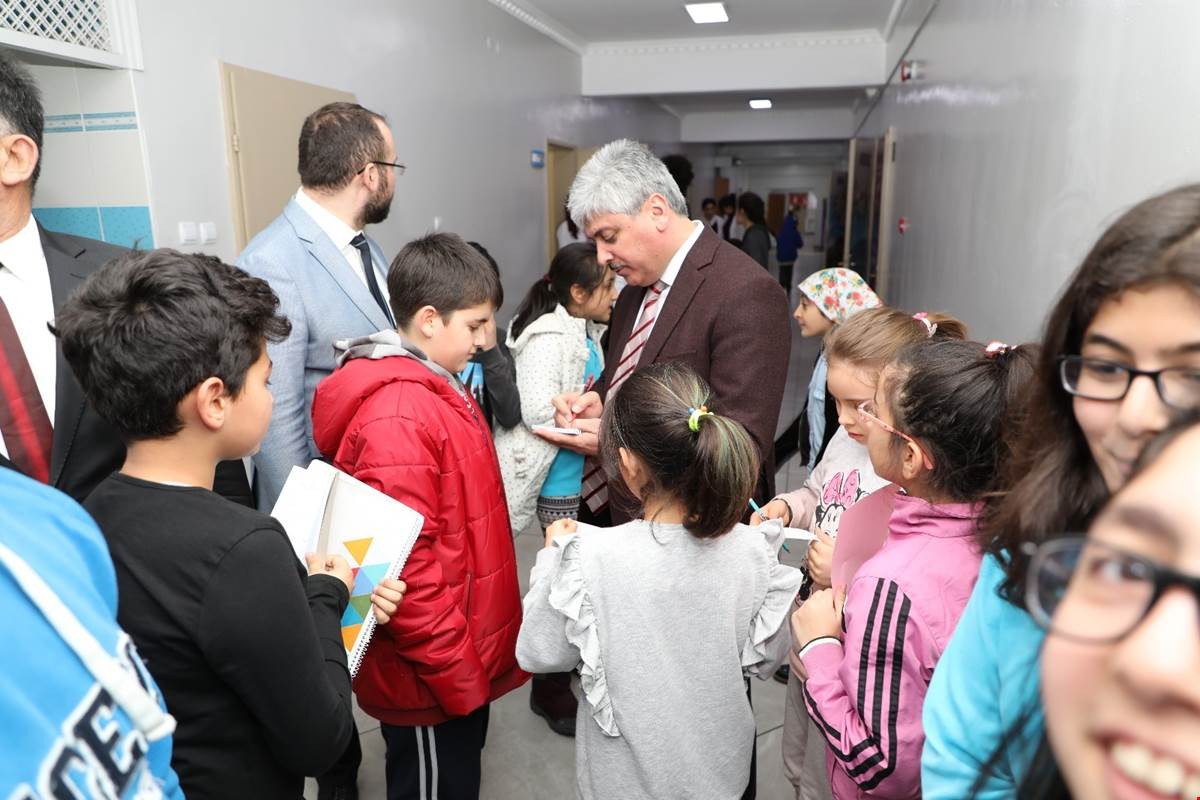 Okul girişinde öğrencilerin yoğun ilgisiyle karşılaşan Vali Doğan, bir süre öğrencilerle dersleriyle ilgili sohbet etti.
