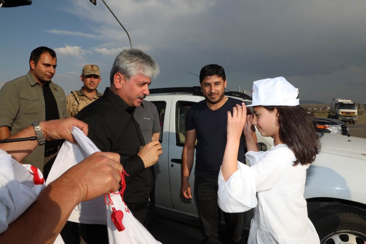 Kars Valisi Rahmi Doğan, yaklaşan kurban bayramı öncesi trafik kazalarını önlemek ve yaşanabilecek olumsuzlukları en aza indirebilmek amacıyla İçişleri Bakanlığı’nca başlatılan “Bu Bayram Ben de Trafik Polisiyim Hatalı Sürücüye Kırmızı Düdük” projesi kapsamında yol kontrol uygulamasına katıldı.
