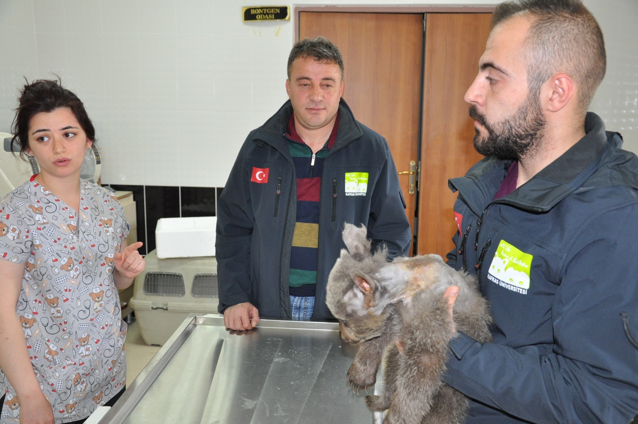 Artvin’de köyüler tarafından bulunan ve Artvin Doğa Koruma Milli Parklar Müdürlüğüne teslim edilen 2 aylık yavru boz ayı, Kars Doğa Koruma Milli Parklar Şube Müdürlüğüne teslim edildi. DKMP Şube Müdürü Murat Doğanay’ın girişimleriyle Kafkas Üniversitesi Yaban Hayvanı Kurtarma ve Rehabilitasyon Merkezi Müdürlüğüne getirilen yavru ayı burada tedavi altına alındı.