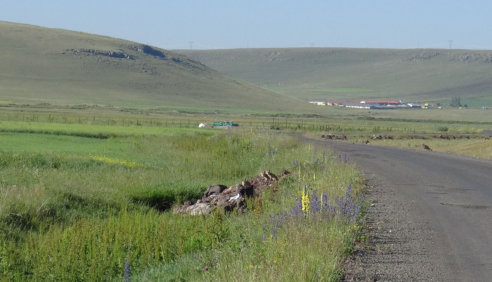 Kars merkez Gelirli köyü yolu kenarında yuva yapan tilkinin 3 yavrusu, yiyecek bulmaya giden annelerini yuvalarının üzerine çıkarak bekliyor. Köy yolu üzerinde annelerini bekleyen yavru tilkiler, kendilerine yaklaşan vatandaşları görünce yuvalarına girerek saklanıyor.